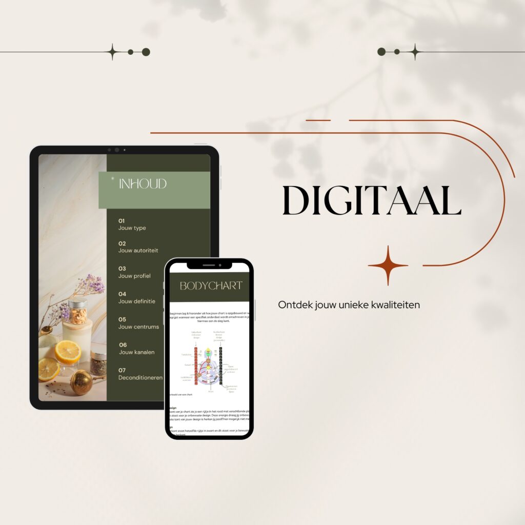 Ben je nieuwsgierig naar jouw eigen Human Design en wil je leren hoe je dit unieke systeem praktisch kunt toepassen in je dagelijks leven? Ik help je om jouw eigen Human Design blauwdruk écht te begrijpen met heldere uitleg, praktische tips en herkenbare voorbeelden. Zo krijg je diepgaand inzicht in jezelf.
