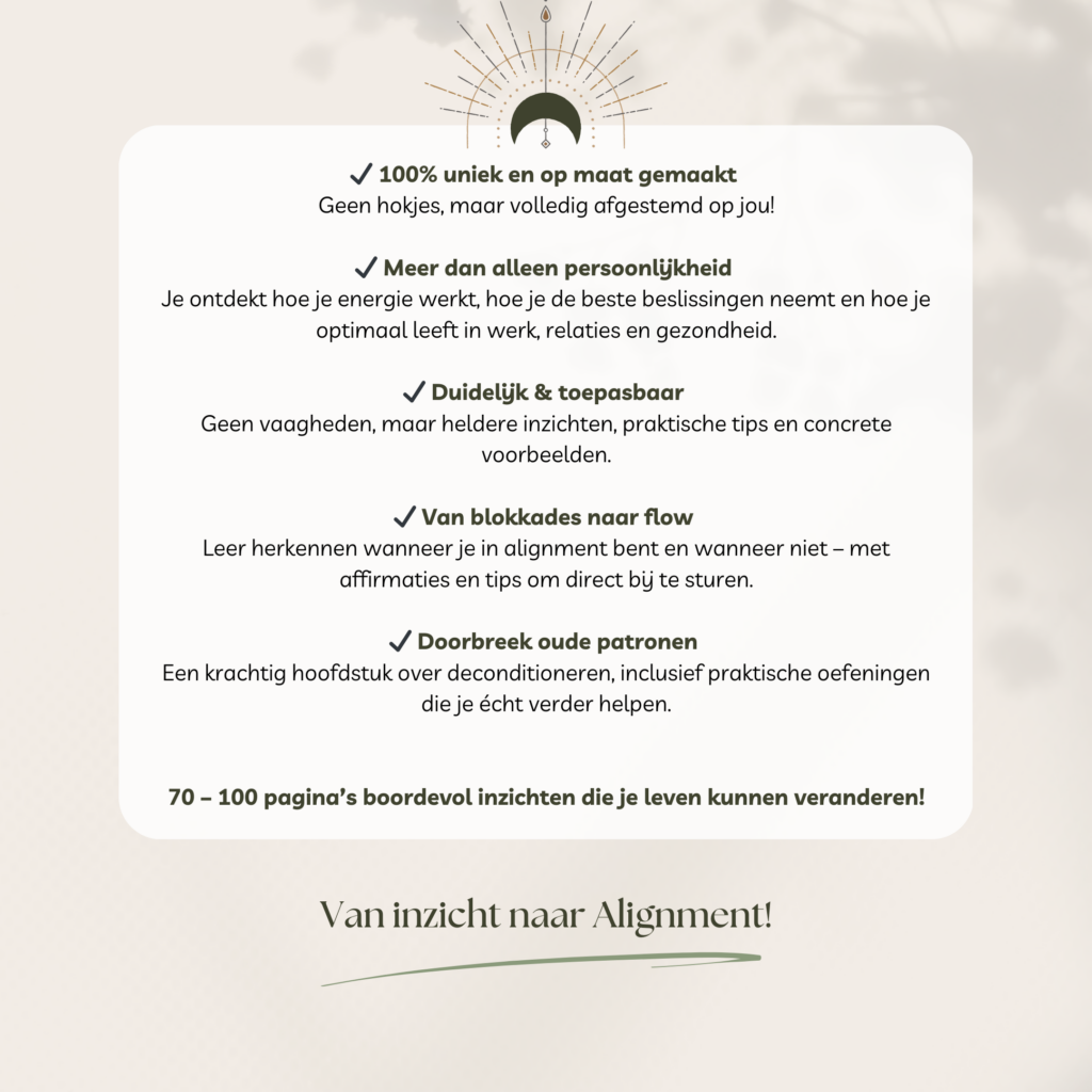 - Dit is geen ‘one size fits all’ test of standaart rapport. Dit is jou persoonlijke handleiding voor een lichter, makkelijker en vervullend leven.